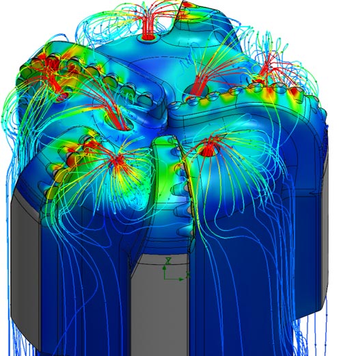 DIAMANT design engineers utilize Computational Fluid Dynamics (CFD) model to simulate the interaction of the drilling fluids with the bit and wellbore.